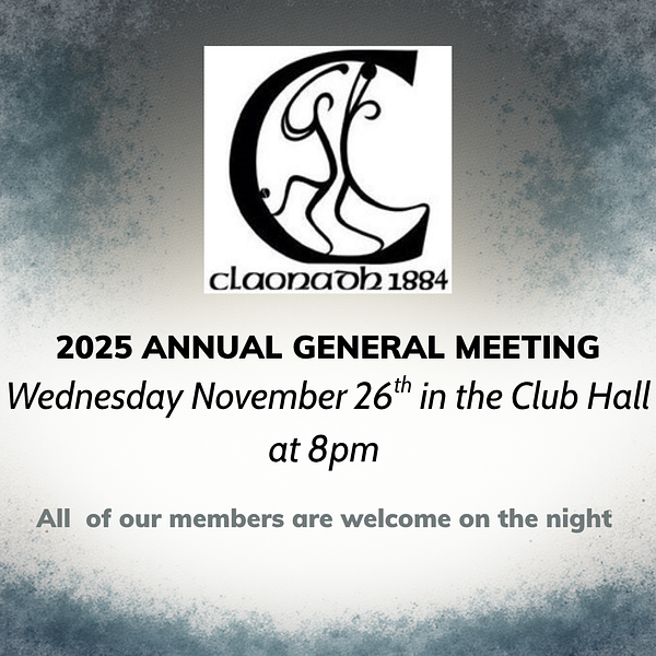 Our AGM takes place in the club on Wednesday Novemeber 26th at 8pm.