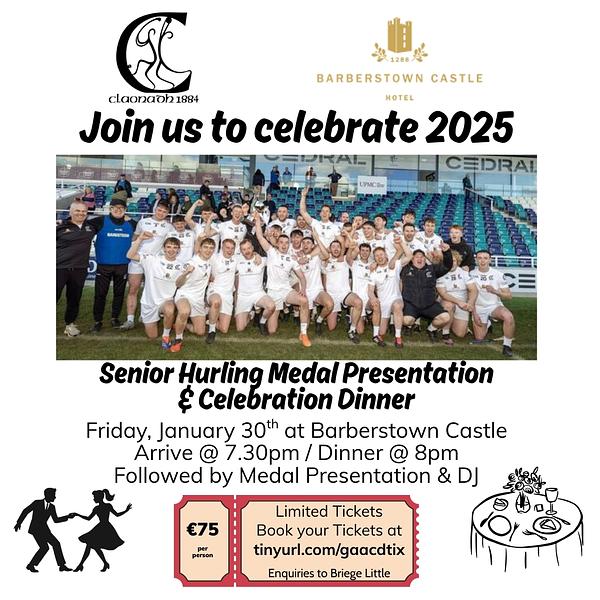 2025 was a great year for our Senior Hurlers, winning the Senior B Championship and progressing to the Leinster Junior Final so it's time to celebrate their achievements.